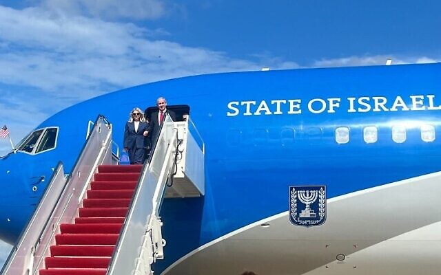 當地時間22日,內塔尼亞胡抵達華盛頓。 《以色列時報》