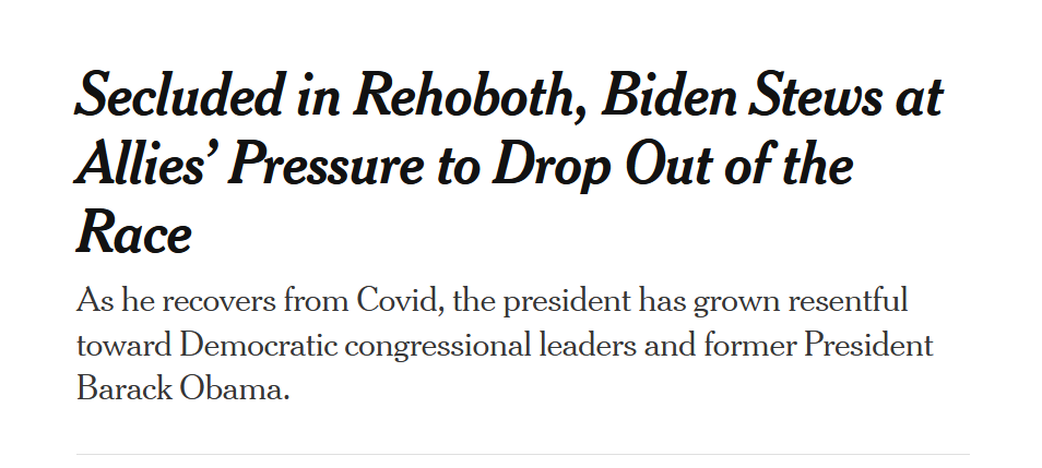 “拜登從政的時間足夠久,讓他能夠假設,最近媒體上出現的泄露信息,是一系列有計劃的行動,目的是逼他退選。他認為佩洛西是主謀,但惱怒於奧巴馬也是幕後操控者……”