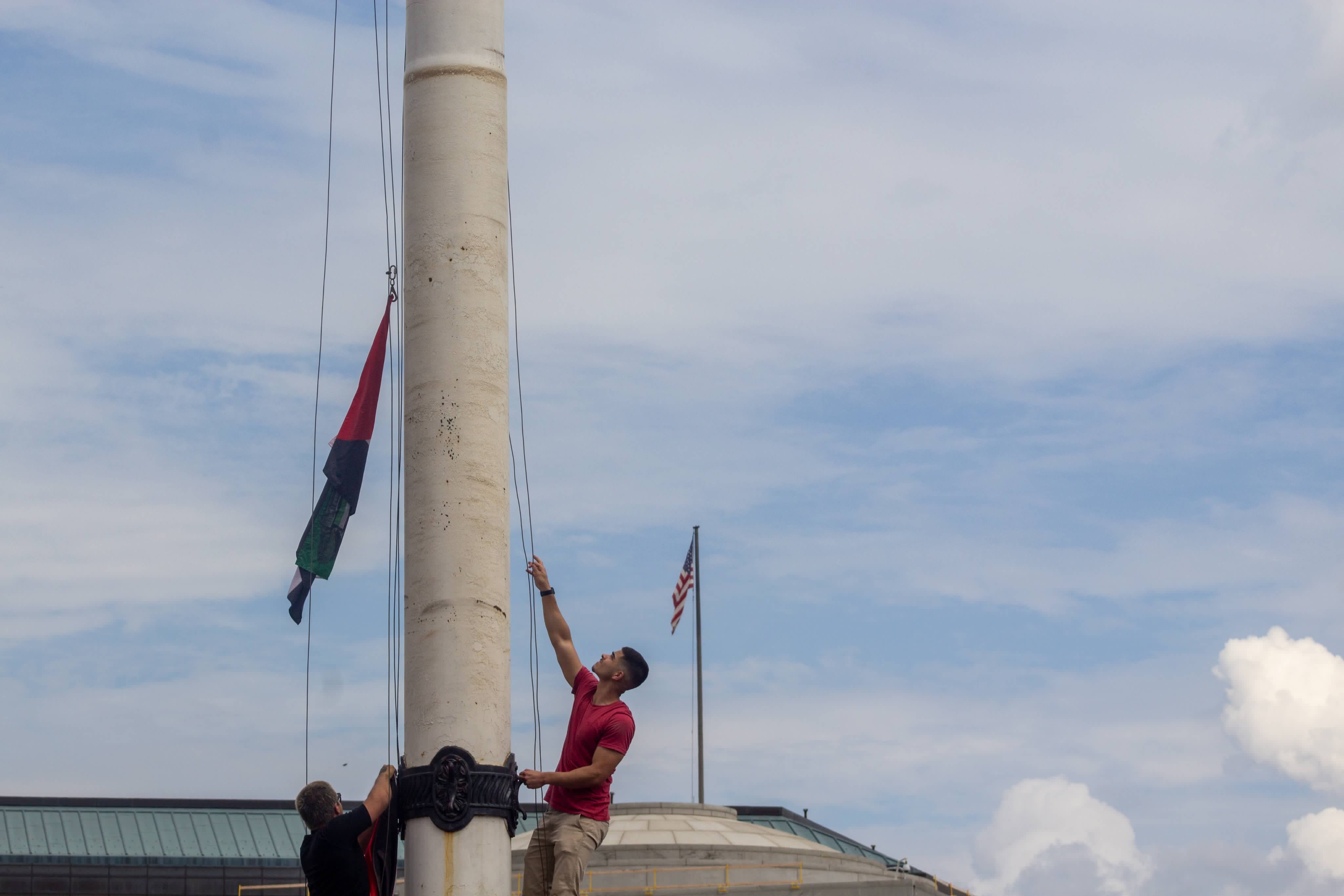 7月24日,示威者降下華盛頓聯合車站的美國國旗,升起巴勒斯坦國旗X