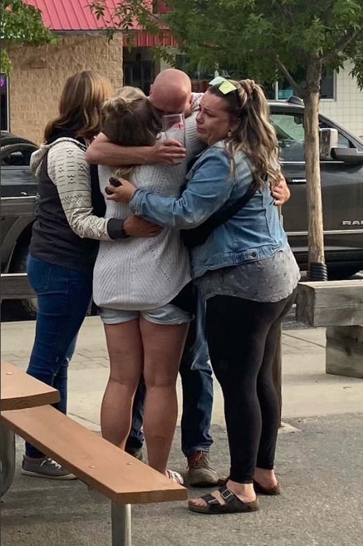 7月24日被疏散的賈斯珀居民相互擁抱。 加拿大《環球郵報》