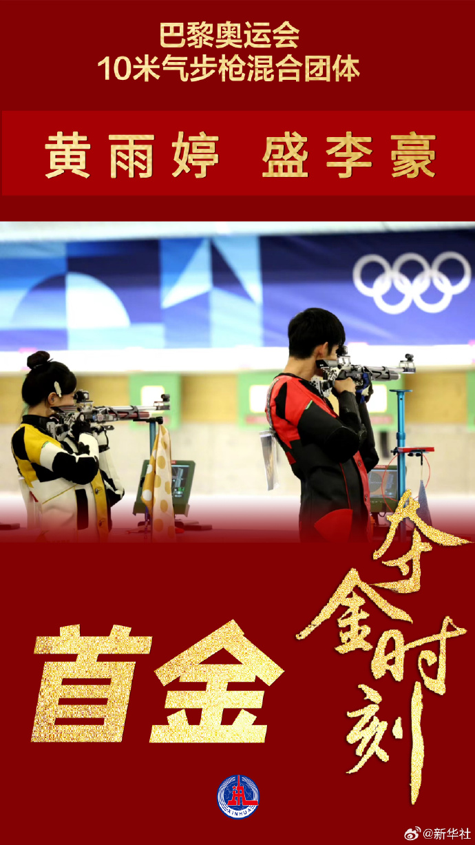 巴黎奧運會首金產生!中國隊奪得射擊混合團體10米氣步槍金牌