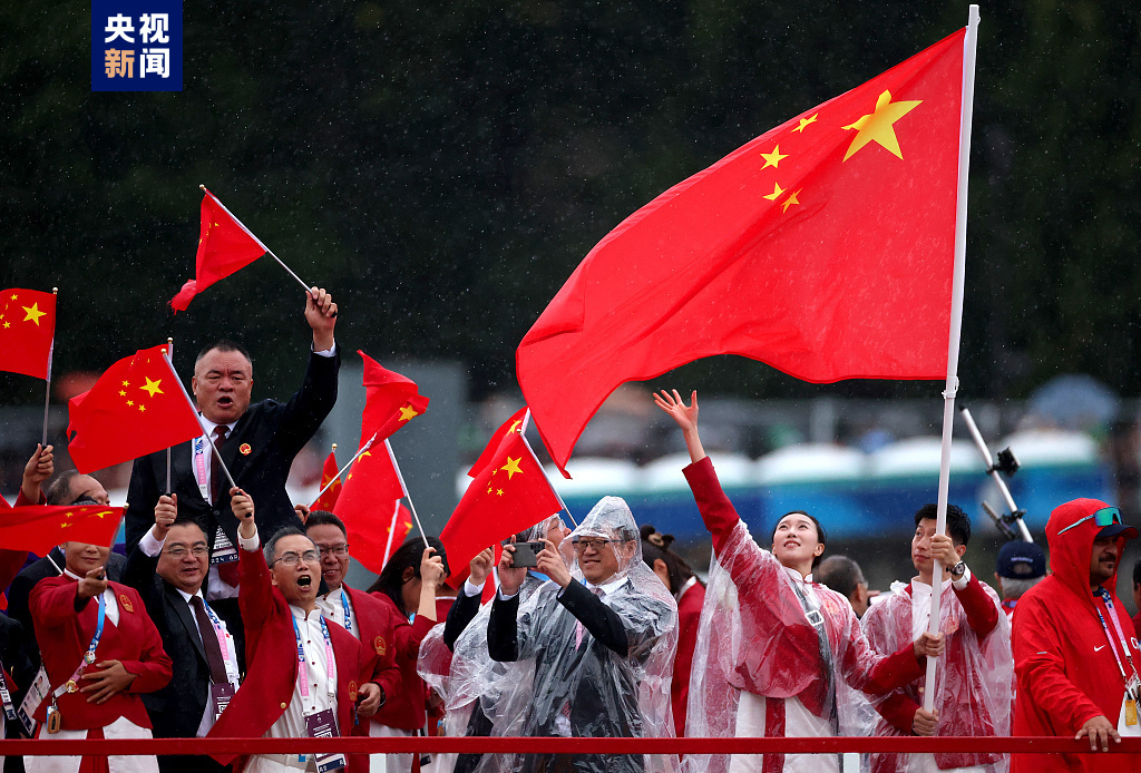 中國紅來了!巴黎奧運會中國體育代表團亮相 guancha 2024-07-27 北京時間7月27日,第33屆夏季奧林匹克運動會開幕式在法國巴黎舉行。開幕式上,乒乓球運動員馬龍、花樣游泳運動員馮雨高擎五星紅旗,中國體育代表團運動員乘坐的遊船在塞納河巡遊。
