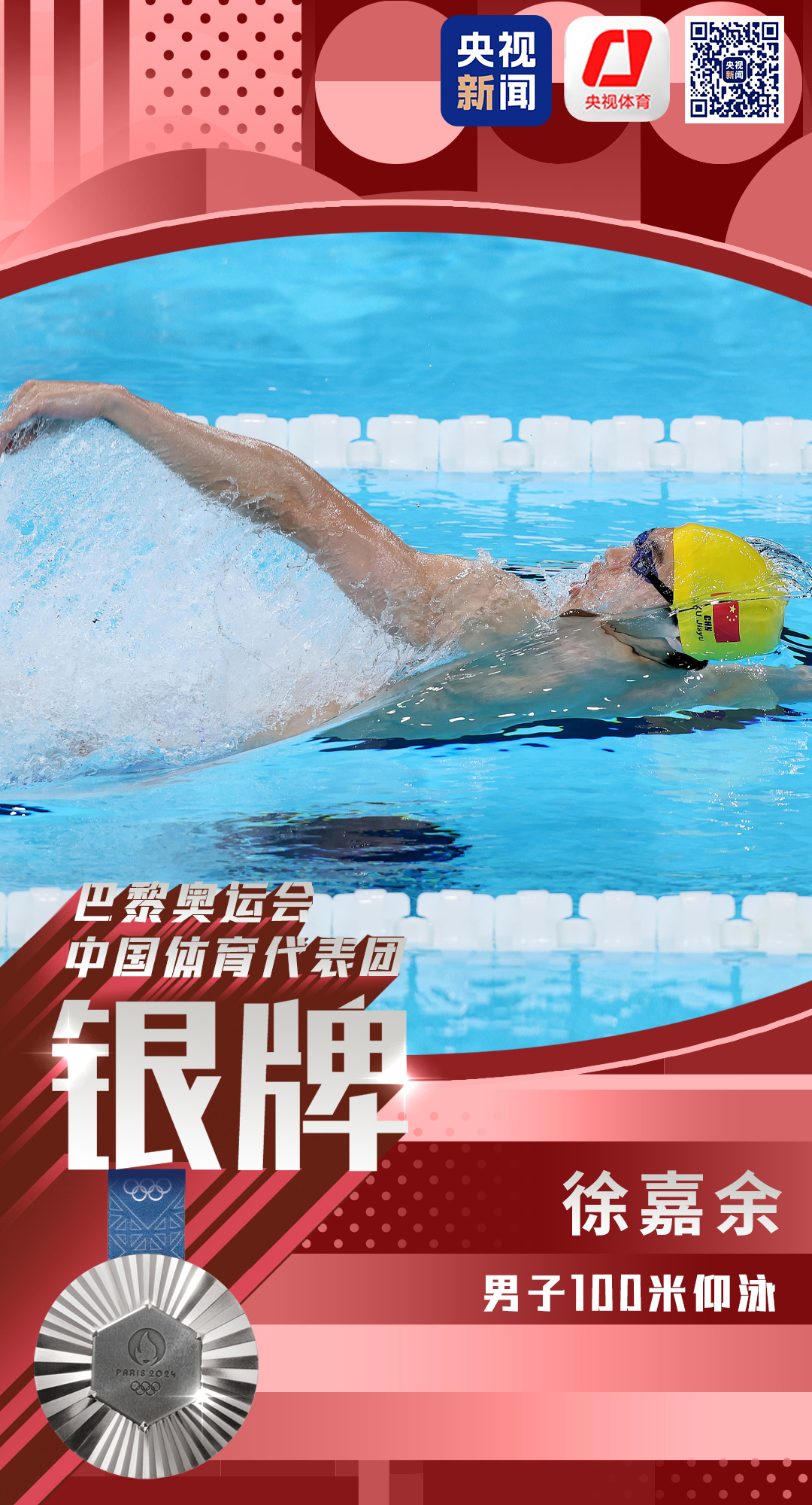 北京時間7月30日,在巴黎奧運會游泳男子100米仰泳決賽中,中國選手徐嘉餘奪得銀牌。中國游泳隊再入一枚獎牌!祝賀!