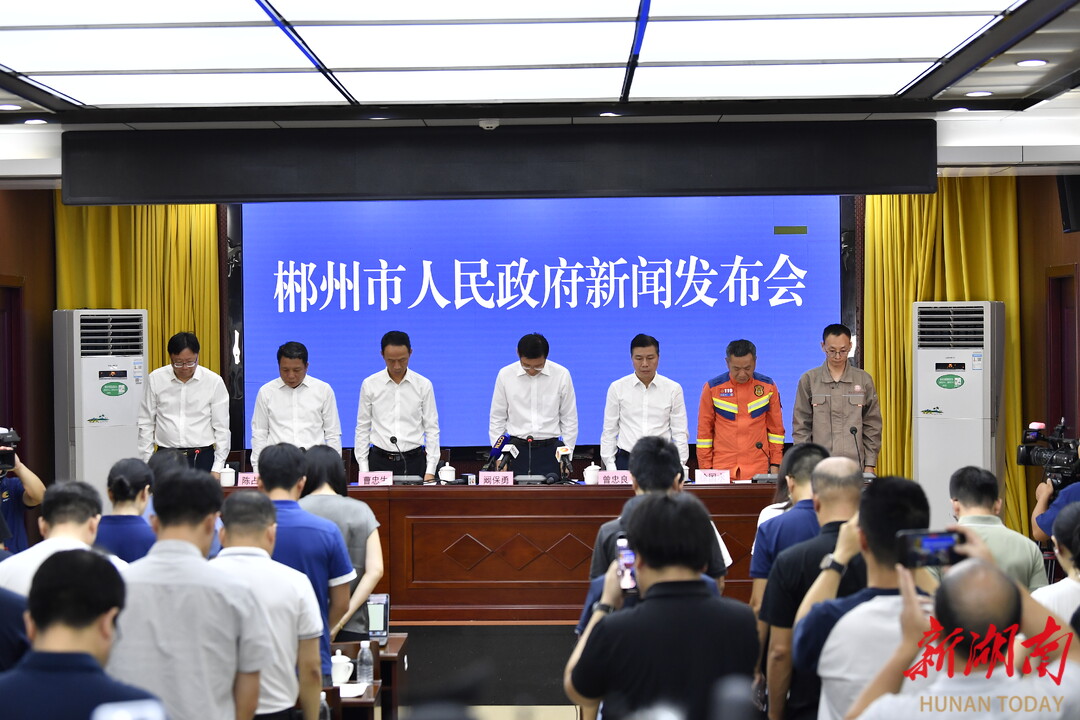 湖南郴州發佈會介紹資興受災救災情況,市長現場致哀