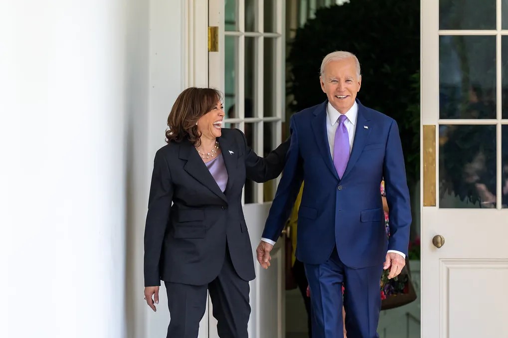 2023年5月26日,拜登和哈里斯穿過白宮西柱廊資料圖