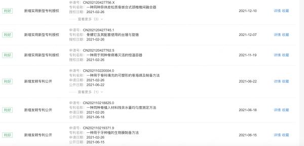 近年來,山西奧瑞公司在骨科植入材料領域獲得了多項相關發明專利。這些專利涵蓋了同種異體骨植入性材料植入性材料的研發、生產及多個創新環節。具體專利包括“同種骨植入材料殘餘水量均勻度測定方法”,用於確保材料質量的穩定性;“骨粉助推器”,提升手術操作的便捷性;“防退出的腰椎椎間融合器”,增強手術效果;“以及用於骨科填充的可塑形的骨海綿及製備方法”。
