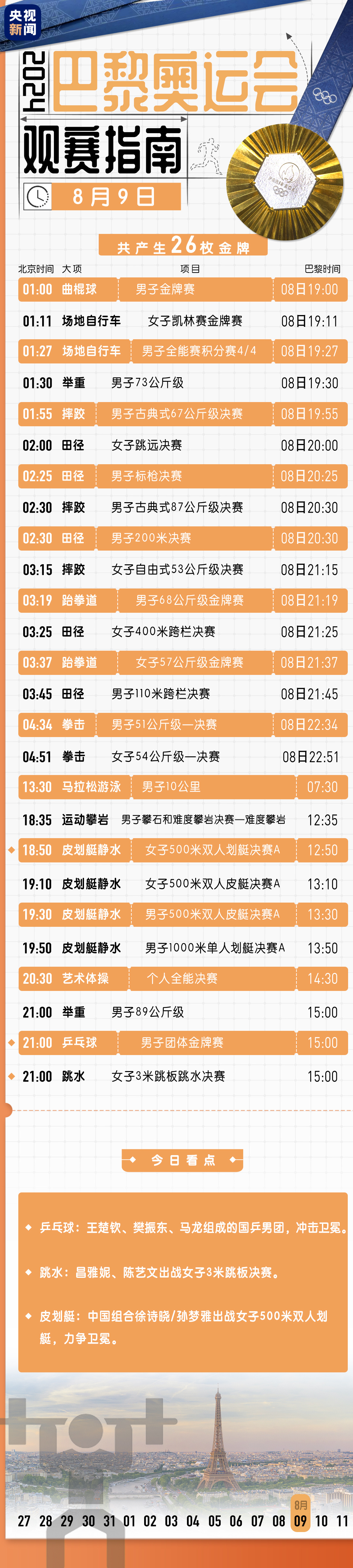 第十三比賽日,中國皮划艇、拳擊摘本屆奧運會項目首金,跳水再次包攬金銀……第十四個比賽日還有哪些精彩看點,先睹為快!
