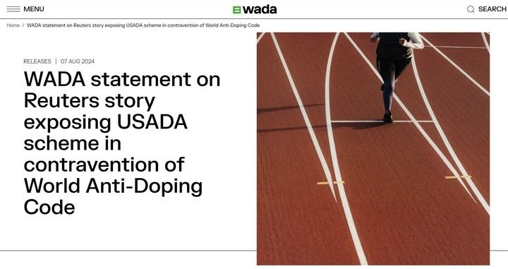 WADA官網發佈關於美國反興奮劑機構掩蓋縱容興奮劑違規事件的聲明。
