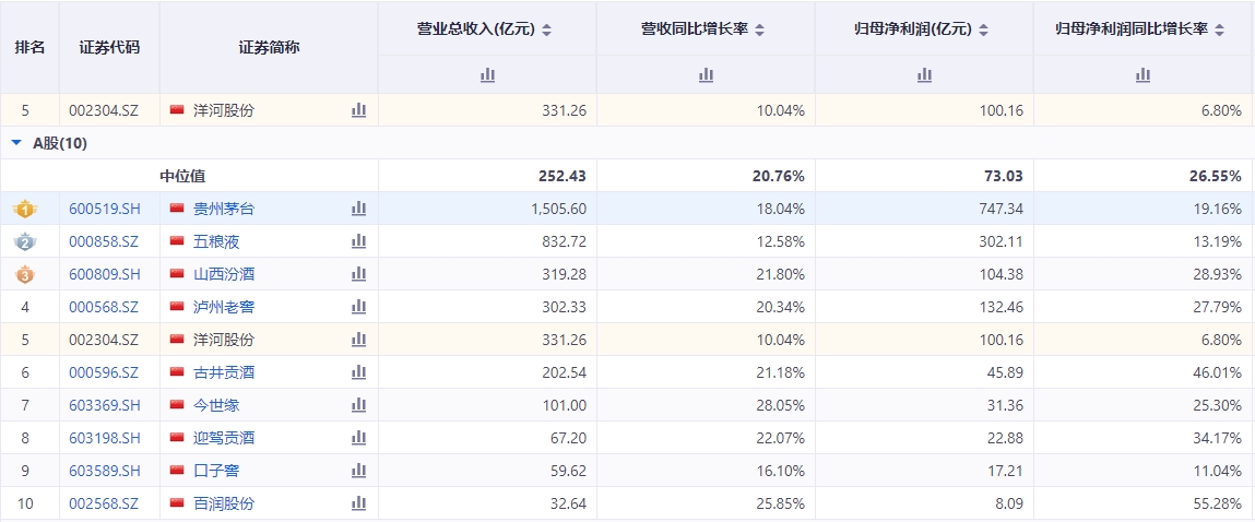 企業此前披露的財報信息顯示,洋河股份2023年全年營收331.26億元,同比增長10.04%;歸母淨利潤100.16億元,同比增長6.8%,兩項核心數據增速在10家A股上市酒企中均墊底。