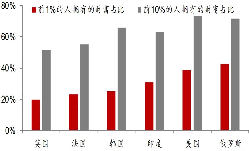 一些國家1%和10%居民持有的財富佔比World Inequality Database,中泰證券研究所
