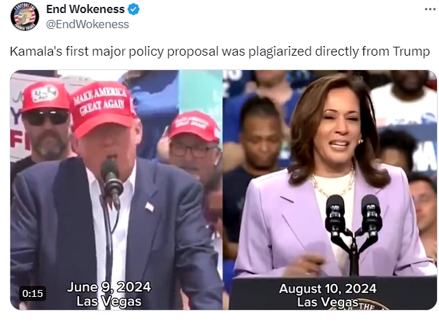 特朗普還轉發右翼自媒體賬號“終結覺醒(endwokeness)”的發文截圖,後者稱“卡瑪拉的第一個主要政策提案直接抄襲了特朗普”。