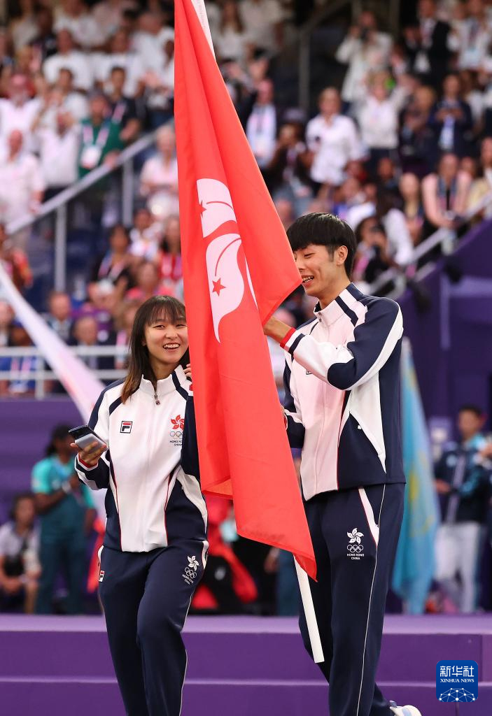 8月11日,中國香港體育代表團旗手在閉幕式上入場。新華社