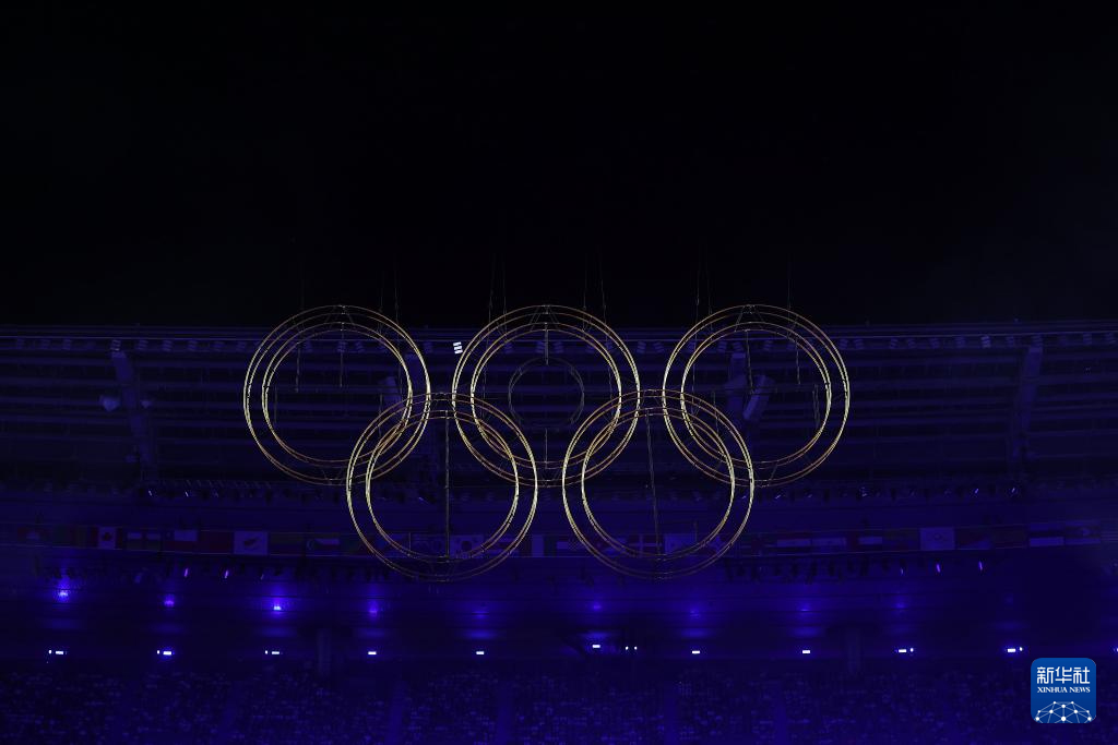 隨着《奧林匹克聖歌》的奏響,奧林匹克旗幟緩緩降下。