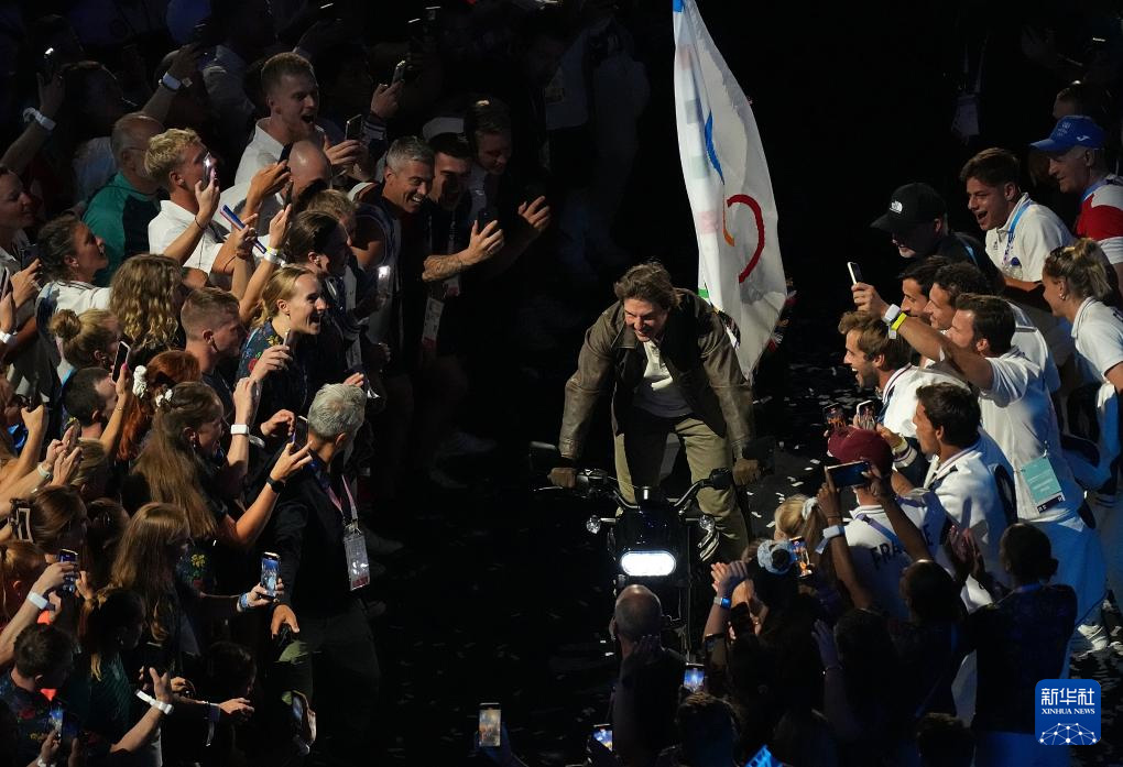 8月11日,演員湯姆·克魯斯在閉幕式現場表演。新華社
