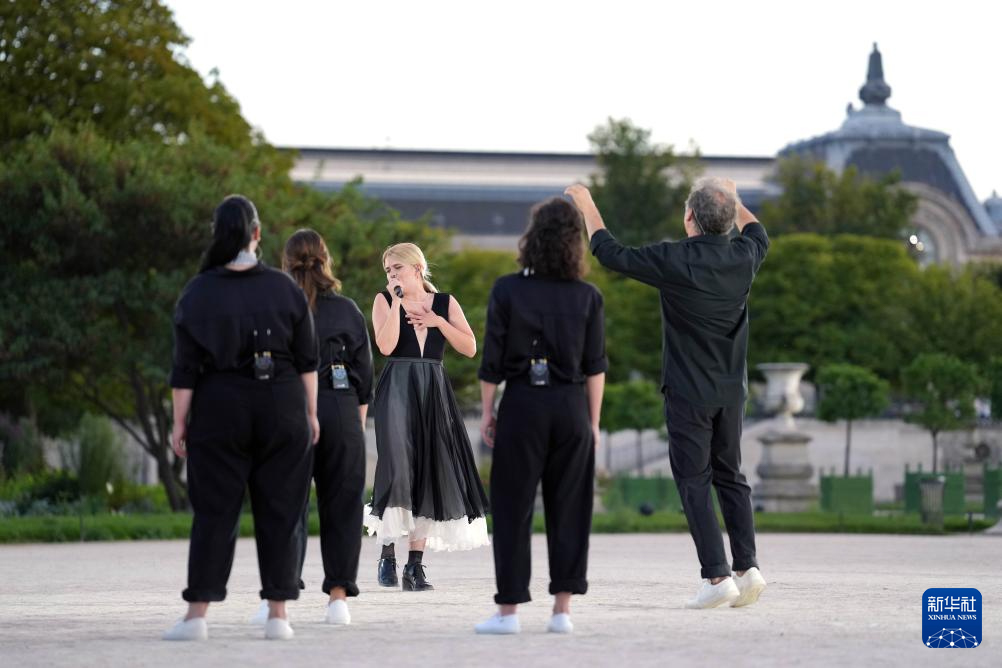 8月11日,演員在巴黎杜樂麗花園表演。新華社