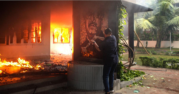 8月5日,示威者燒掉了紀念孟加拉國“國父”穆吉布·拉赫曼的紀念館。 外媒截圖