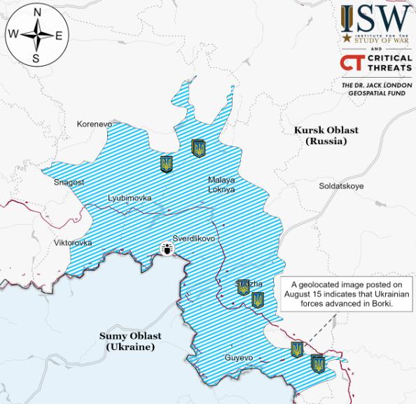 由美國“戰爭研究所”(ISW)估畫出的烏軍在庫爾斯克州最新控制區示意圖