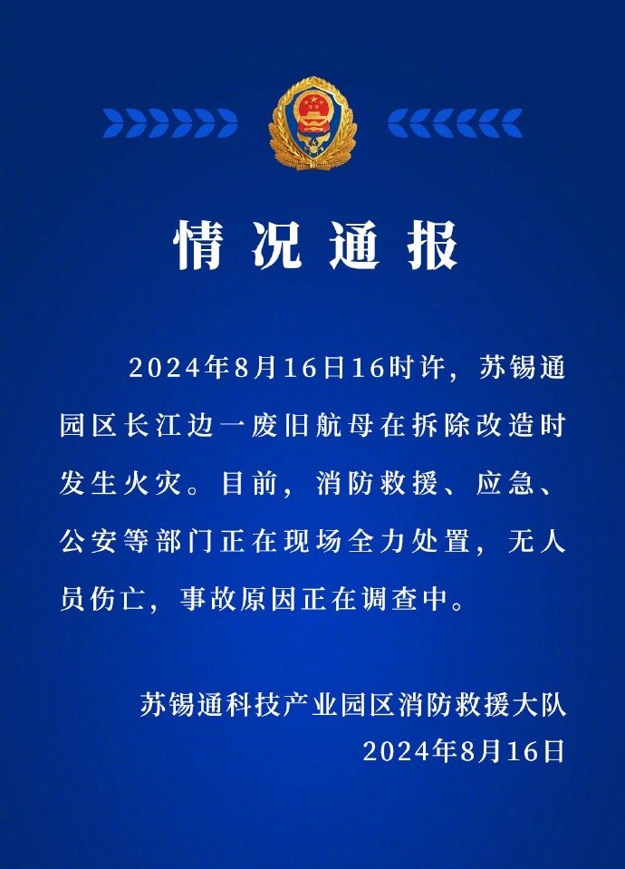 當地政府很快發佈了消息,稱“蘇錫通園區長江邊一廢舊航母在拆除改造時發生火災”。而航母上的大火在燒了一夜之後,到白天也基本熄滅。能夠看出航空母艦的上層建築損毀嚴重,相當一部分融化倒塌,日後想要對其進行修復不説不可能,也是極為困難和高成本的了。