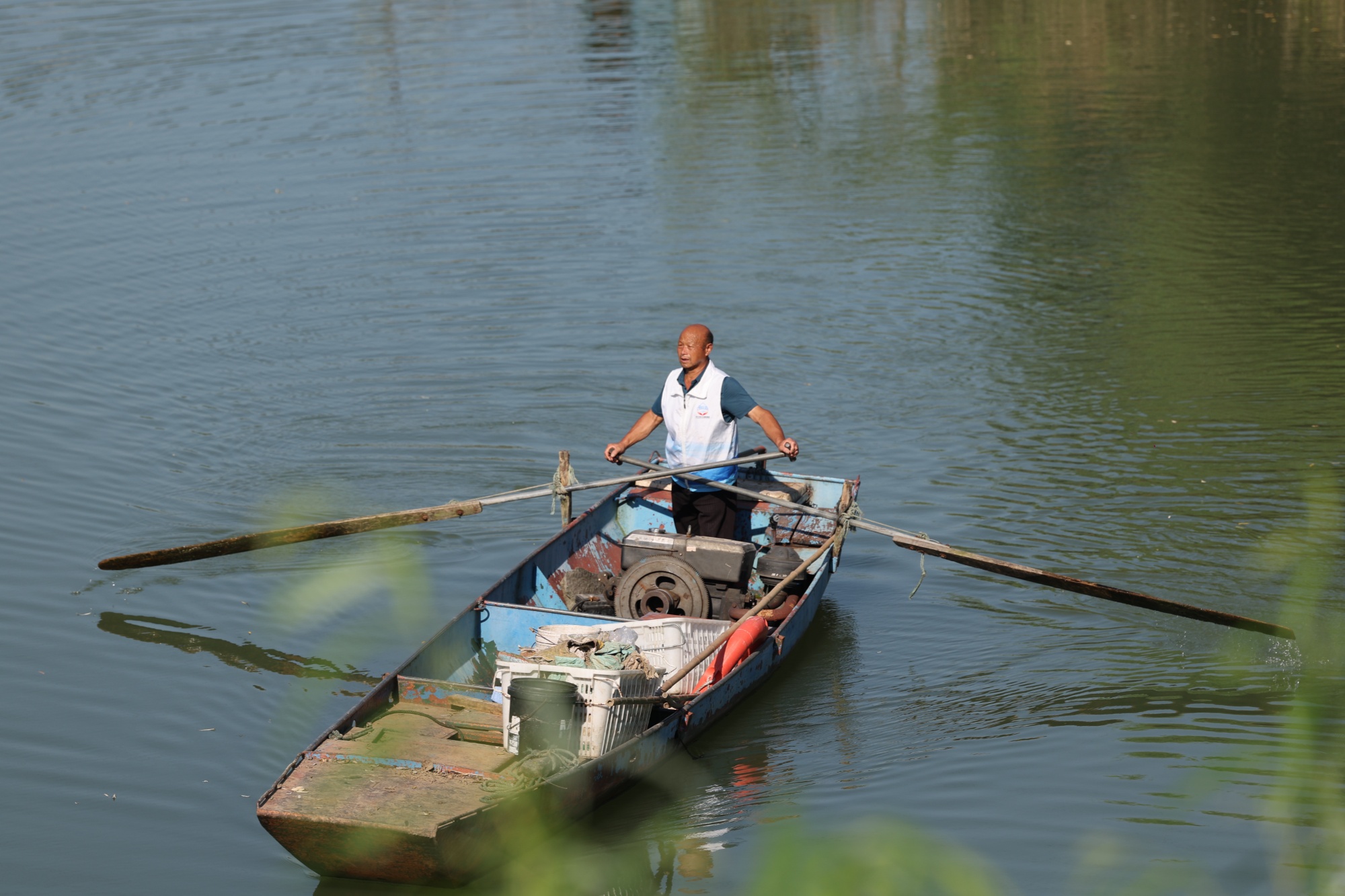 2020年,長江流域重點水域“十年禁漁”全面啓動,老蔣積極響應,主動上交跟了自己半輩子的9條漁船。後來,為了發揮他熟悉水域、水性好的特長,當地政府為他配置了一條“守井衞士”船,用於巡江清漂和水上救援。