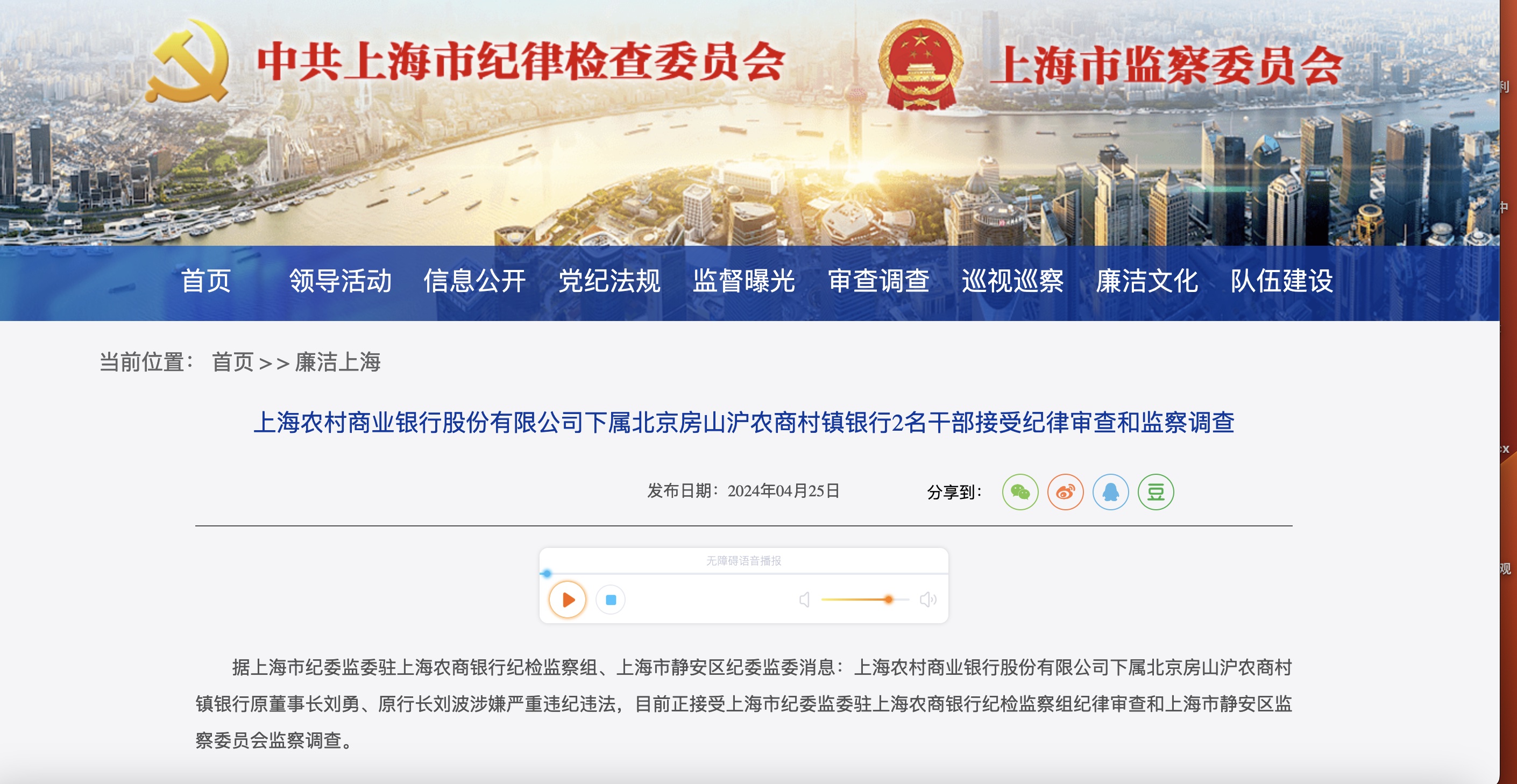 截圖來自上海市監察委員會官網