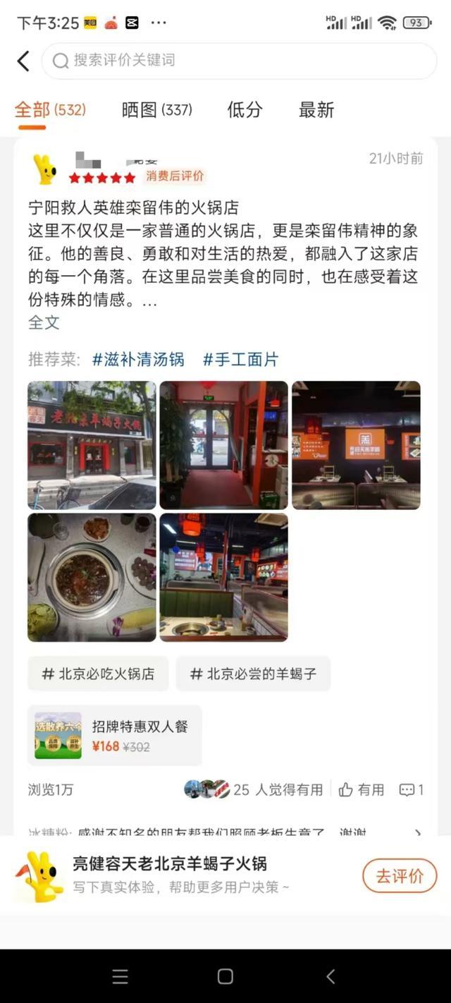 欒留偉的事蹟被報道後,不少網友自發前往欒留偉的火鍋店吃飯,還在美團網上打出五星好評,並留言向欒留偉致敬:“這裏不僅僅是一家普通的火鍋店,更是欒留偉精神的象徵。他的善良、勇敢和對生活的熱愛,都融入到這家店的每一個角落。在這裏品嚐美食的同時,也在感受着這份特殊的情感。”