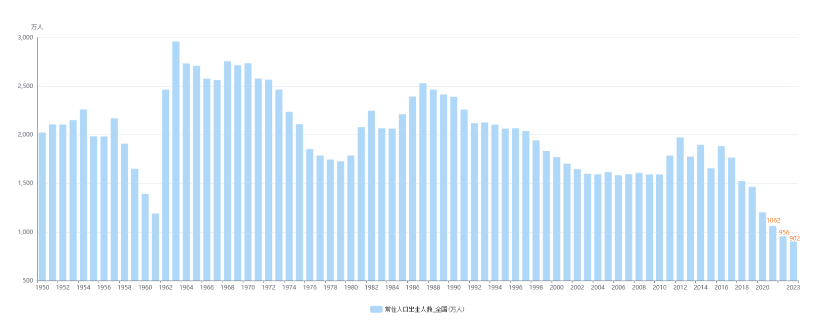 可見儘管全面兩孩政策放開,但出生人數還是在持續下降。面對這樣的情況,2021年6月又出台了三孩政策及其配套支持措施,儘管如此,2021年出生人口仍然繼續下降,只生了1062萬人,2022年則跌破1000萬大關,只有956萬。2023年就像你前面提到的,變得更少,只有902萬。