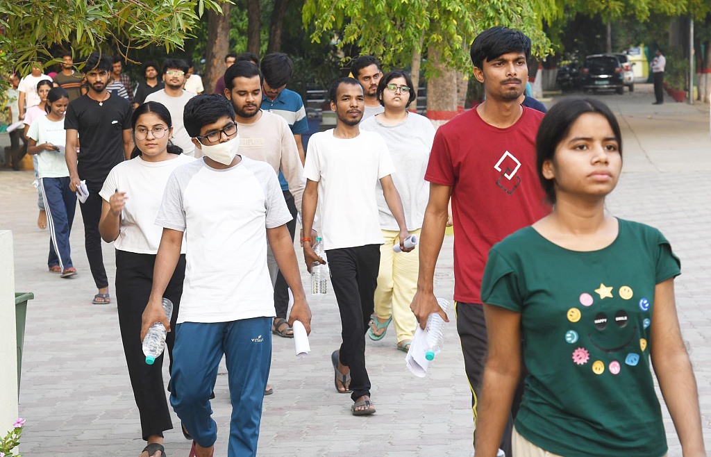 當地時間2024年5月5日,印度巴特那,參加完醫科“高考”(NEET)的考生走出考場 視覺中國