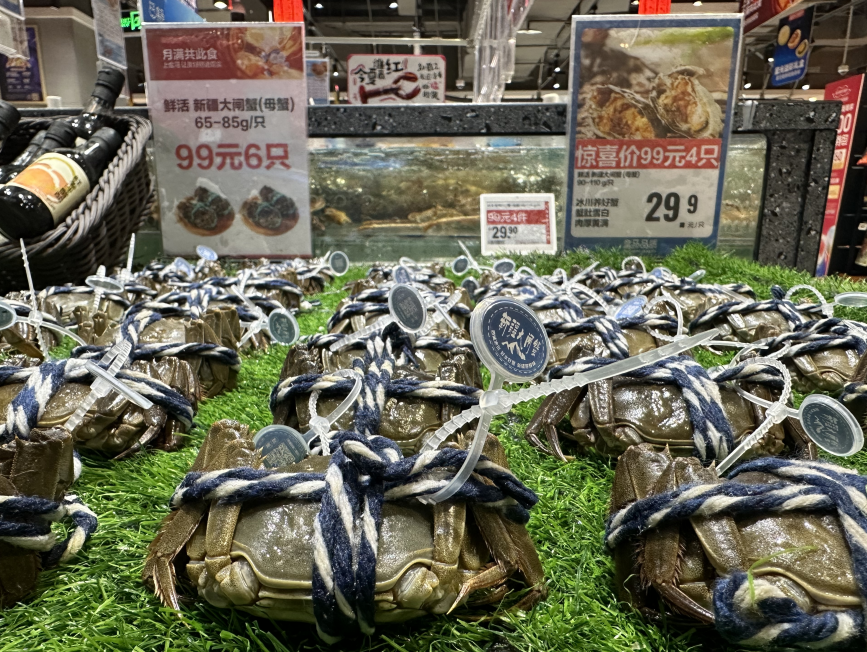 新疆阿勒泰大閘蟹豐產 打“飛的”24小時“爬”上盒馬貨架