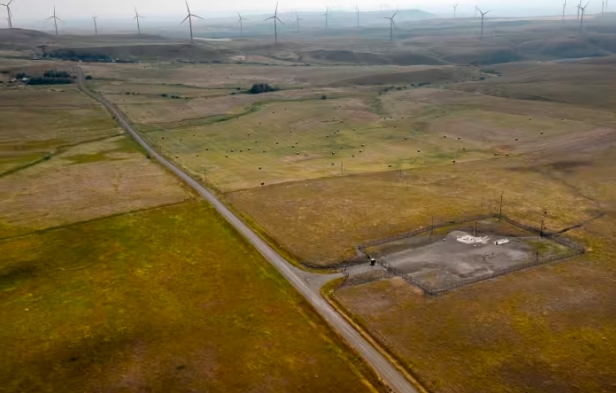 美國蒙大拿州馬姆斯特羅姆空軍基地導彈發射場附近是風電場。 美聯社