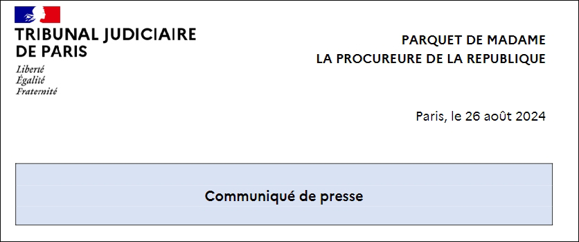 巴黎檢方就杜羅夫被捕發表的媒體聲明