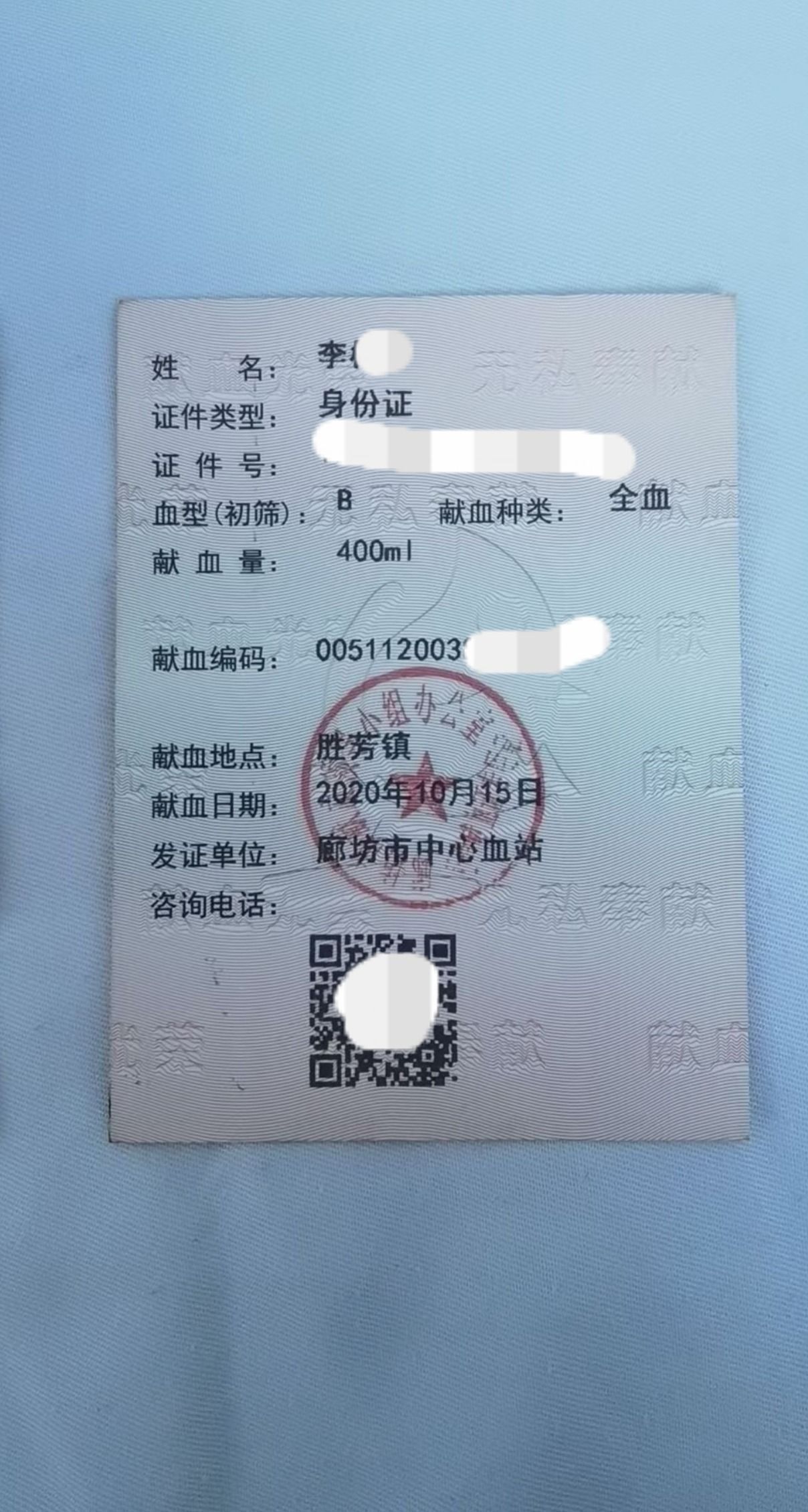 8月15日,李先生因突發疾病險些休克,隨後前往霸州市(由廊坊市代管)第二醫院就診。然而,讓他沒想到的是,在後續調血時醫生卻告訴他,由於其近期沒有獻血記錄,獻血證過期作廢,無法為他調血。