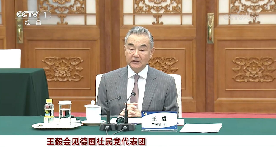 王毅表示,今年是中德建立全方位戰略伙伴關係10週年,習近平主席4月同朔爾茨總理舉行會見,為兩國關係發展把舵定向。中方願與德方一道,加強黨際交往,鞏固戰略互信,深化務實合作,推動中德、中歐關係行穩致遠,攜手構建人類命運共同體。