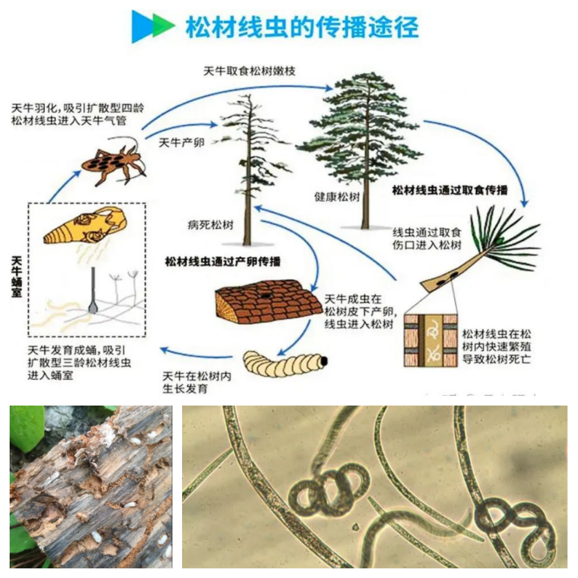 而松材線蟲,這個原產於北美洲,於20世紀80年代首次在中國江蘇省連雲港被發現的外來物種,其利用松褐天牛的化蛹期聚集,羽化期傳播,進而大範圍感染健康松樹。松材線蟲在健康樹體松脂道內大量繁殖,造成松樹快速死亡,對我國相關林業造成巨大破壞。