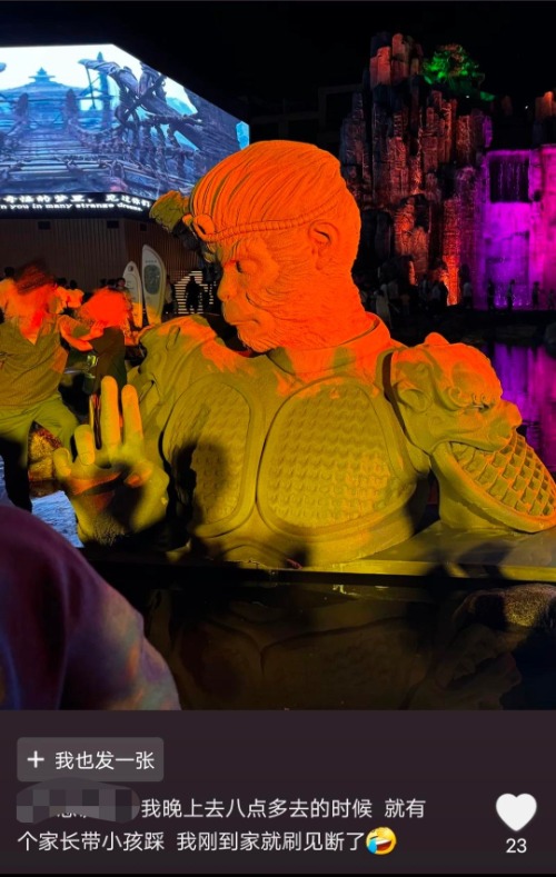 對於清源水城的黑神話悟空雕塑被打卡遊客踩壞,有網民在社交媒體上留言表示,“我晚上去八點多去的時候 ,就有個家長帶小孩踩,我剛到家就刷見斷了。”還有網民表示雕像旁邊有水池,孩子們在旁邊玩耍有安全隱患。