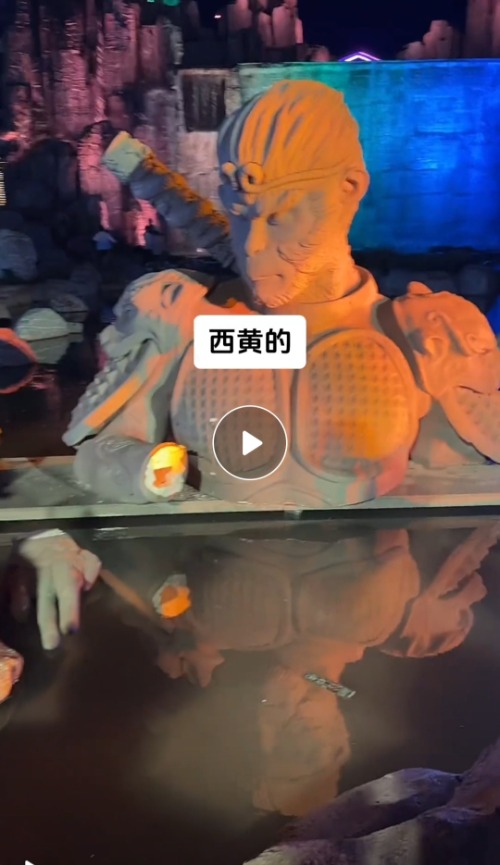 清源水城的黑神話悟空雕塑被踩壞,手臂斷裂。