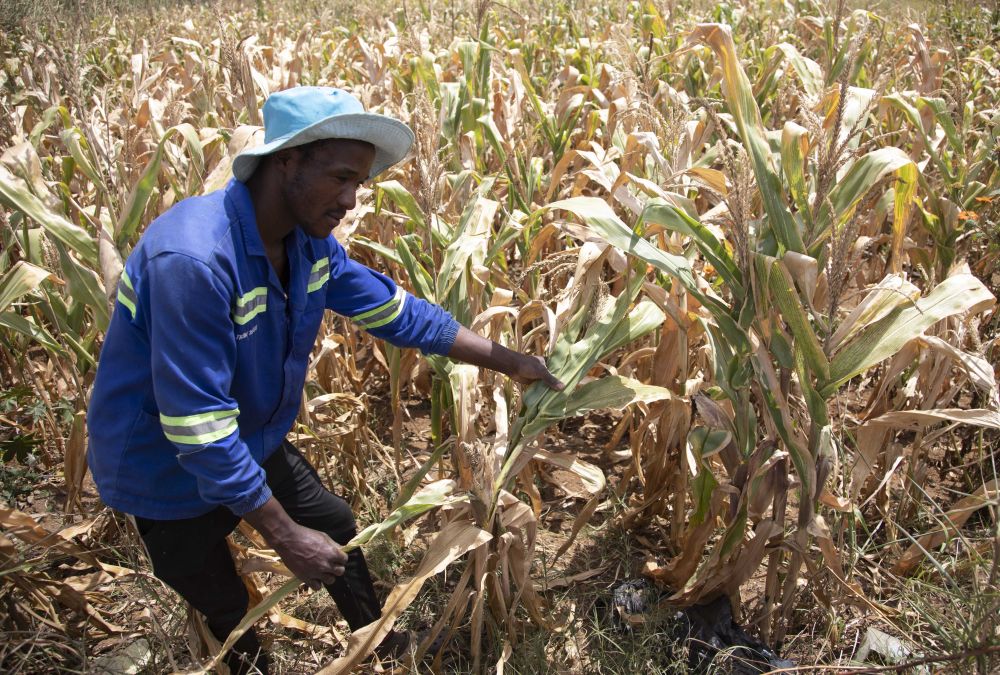 4月3日,農民在津巴布韋首都哈拉雷近郊的一塊玉米地檢查作物長勢。新華社發