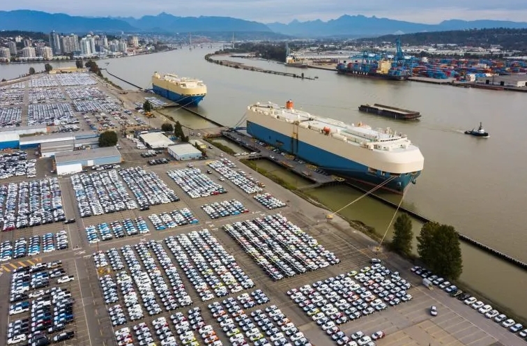 數據顯示,自特斯拉2023年開始向加拿大運送上海製造的電動汽車以來,從中國運抵温哥華港的汽車數量同比增長了460%,達到44356輛。