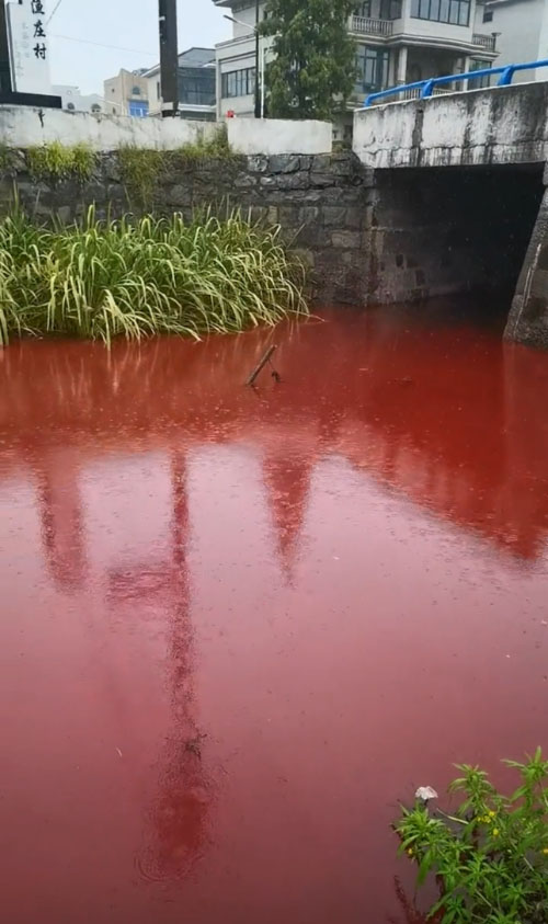 杭州一河段河水呈異常紅色,官方通報
