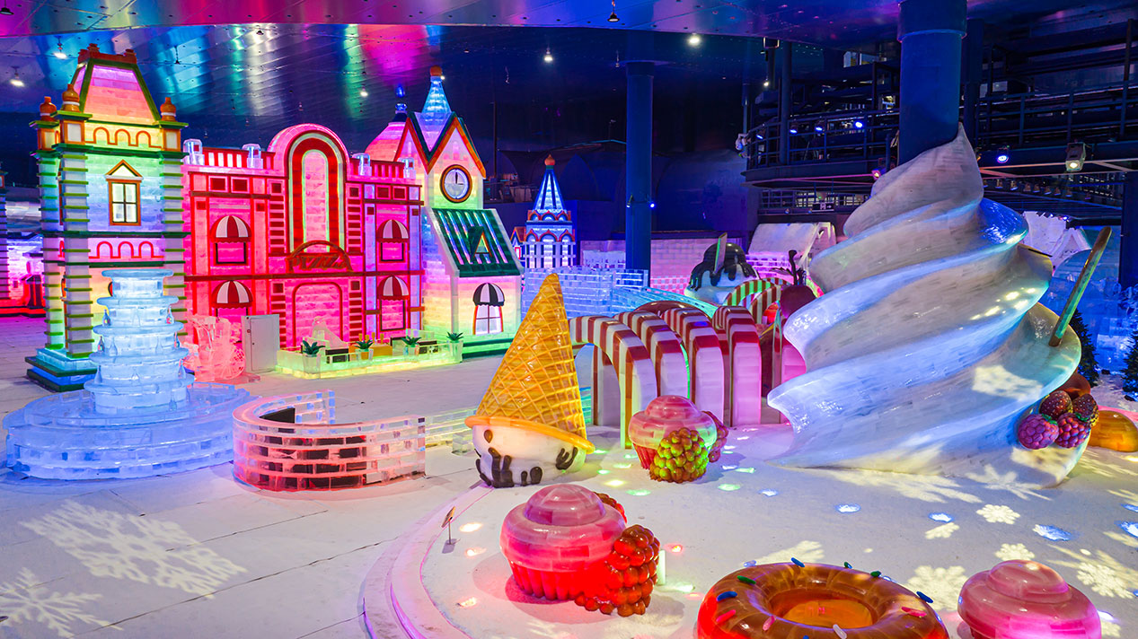去年冬季遊火出圈的哈爾濱把冰雪的樂趣延續到了今年夏季。暑期以來,哈爾濱冰雪大世界“上新”一座冰雪樂園夢幻冰雪館,併成功挑戰吉尼斯世界紀錄,榮獲“最大的室內冰雪主題樂園”稱號。孫澤旻對觀察者網介紹,“夢幻冰雪館有冰雪森林、雪國冰堡等9個主題分區和13個體驗項目,讓遊客沉浸式體驗冰雪營造的神奇場景和夢幻氛圍,而用於景觀建設的冰均為採自松花江的存冰。”