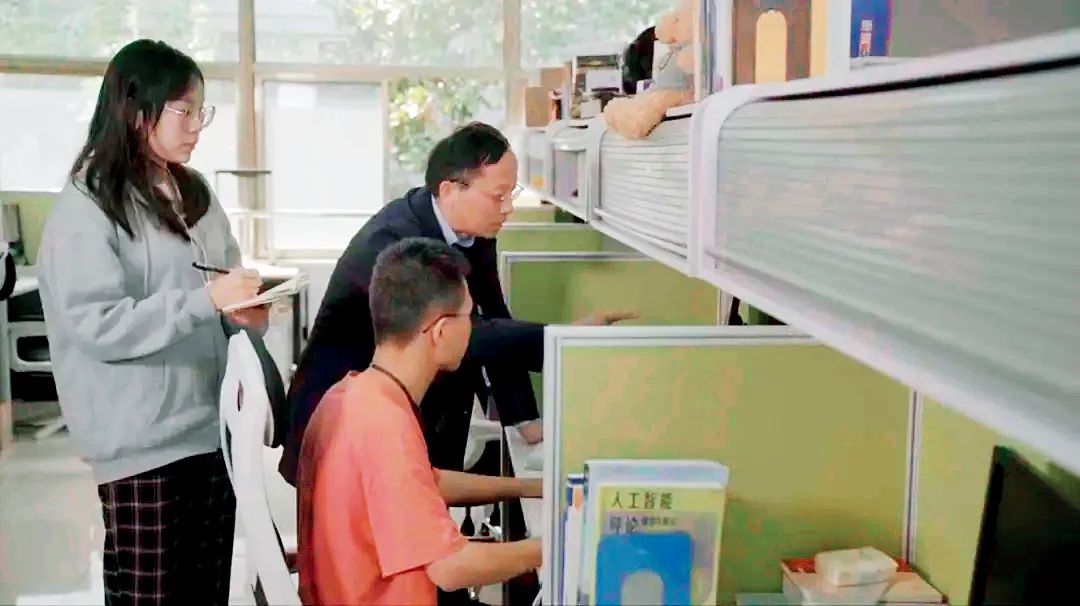 浙江大學計算機科學與技術學院,吳飛在實驗室指導研究生。受訪者提供