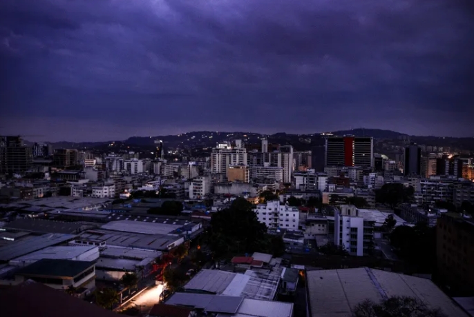 2019年3月,委內瑞拉也曾遭遇過大範圍全國性停電。圖為停電後的首都加拉加斯。法新社