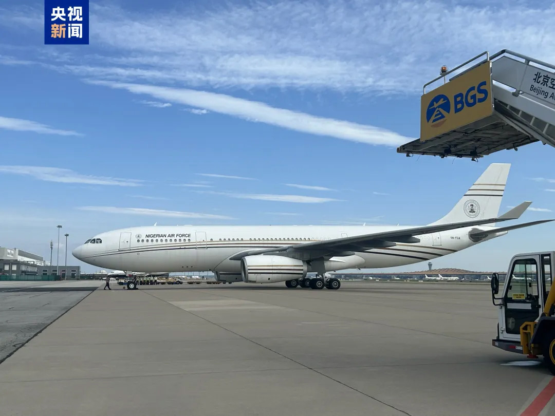 1日上午9時6分左右,尼日利亞總統提努布乘機抵達北京。