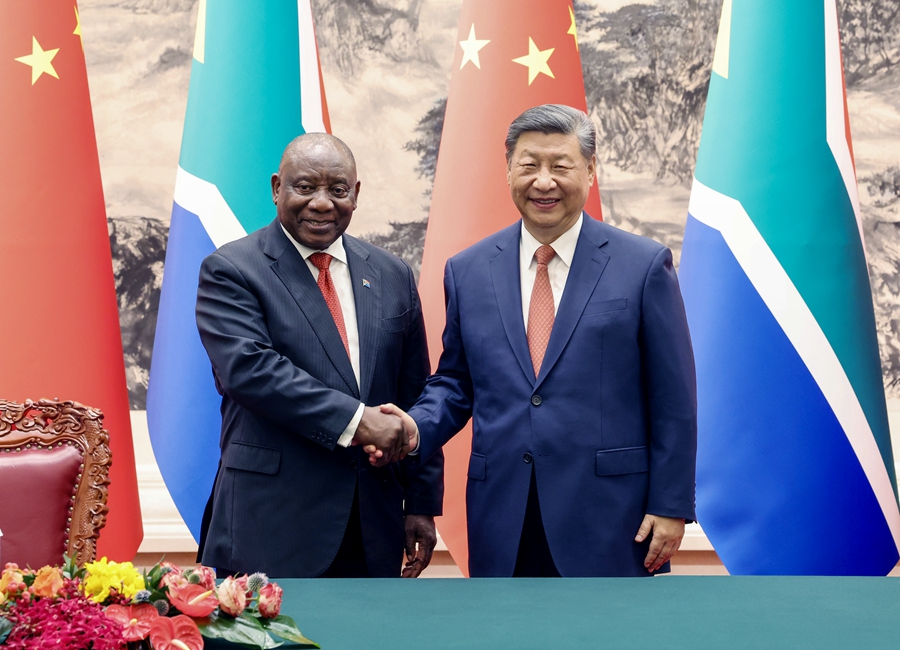 9月2日下午,國家主席習近平在北京人民大會堂同來華出席中非合作論壇北京峯會並進行國事訪問的南非總統拉馬福薩舉行會談。兩國元首宣佈,將中南關係提升為新時代全方位戰略合作伙伴關係。