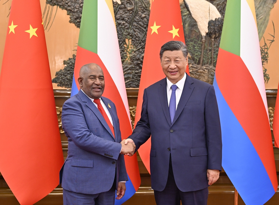 9月2日上午,國家主席習近平在北京人民大會堂會見來華出席中非合作論壇北京峯會的科摩羅總統阿扎利。兩國元首宣佈,將中科關係提升為戰略伙伴關係。
