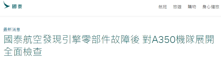 全球首例!國泰航空通報空客A350引擎零部件故障,歐洲航空安全局展開調查
