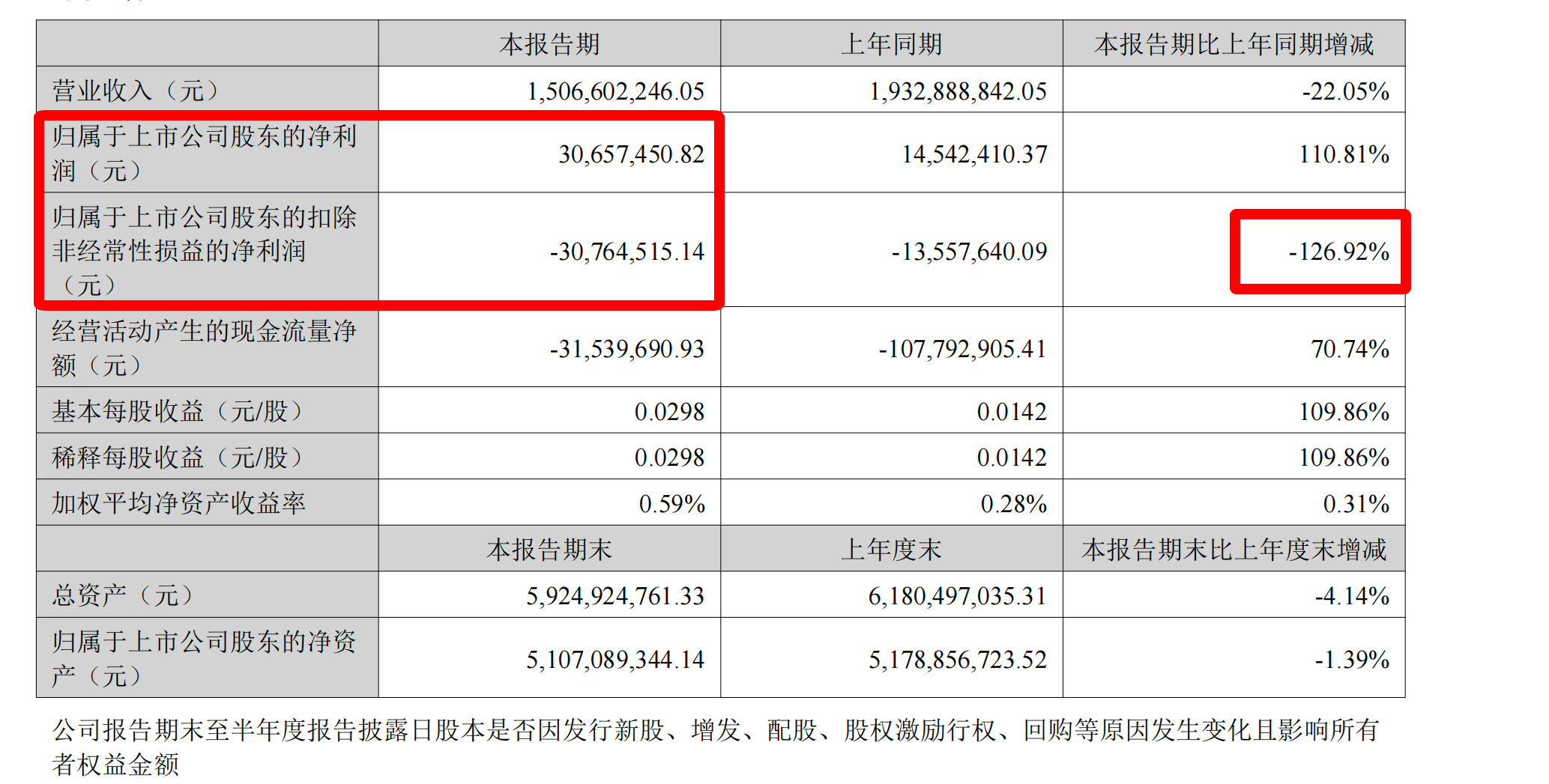 不過,扣除非經常性損益後的淨利潤(扣非淨利潤)仍處於虧損狀態,虧損3076.45萬元,上年同期虧損1355.76萬元,較去年同期虧損擴大超一倍。