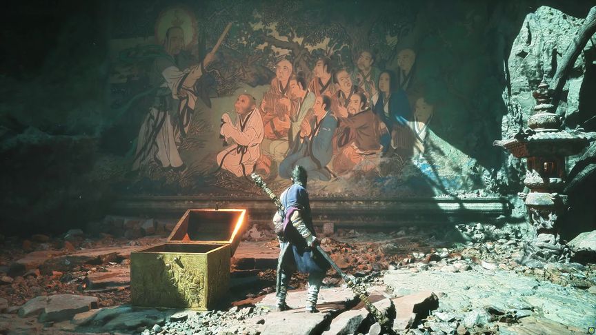 遊戲中的壁畫名為《盤中謎》,畫中老者即孫悟空師父菩提老祖。