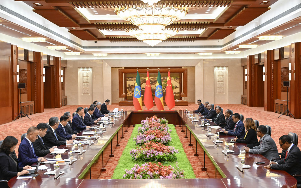 習近平指出,埃塞俄比亞是非洲國家謀求獨立解放和自主發展的榜樣,中埃塞關係堪稱中非友好合作的榜樣。兩國政治互信基礎牢固,各領域合作不斷邁向更高水平。中方願同埃塞持續深化團結合作,推動兩國全天候戰略伙伴關係不斷向前發展,為推動中非友好作出更大貢獻。