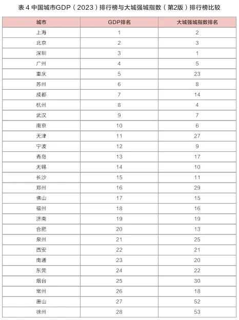 這份強城指數,很大程度與2023年城市GDP排名一致,印證了強者恆強。