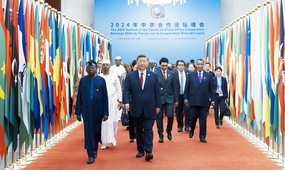 9月5日上午,國家主席習近平在北京人民大會堂出席中非合作論壇北京峯會開幕式並發表主旨講話。習近平宣佈,中國同所有非洲建交國的雙邊關係提升到戰略關係層面,中非關係整體定位提升至新時代全天候中非命運共同體,將實施中非攜手推進現代化十大夥伴行動。